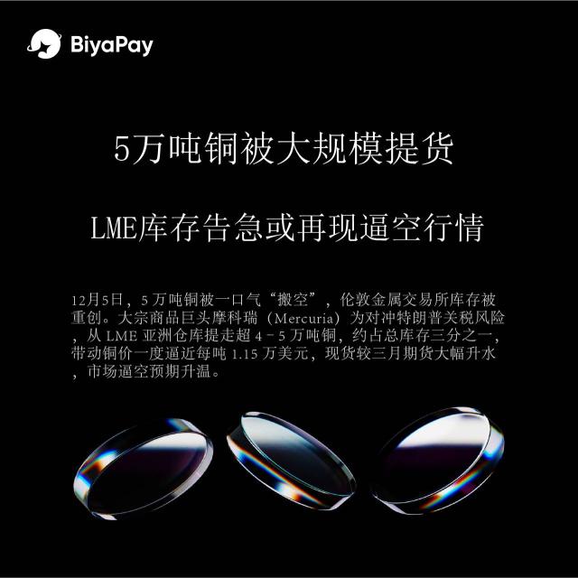 BiyaPay Analyst: 50,000 tons of copper were taken off the shelves in a large-scale transaction, and LME inventory shortages may lead to another short squeeze.